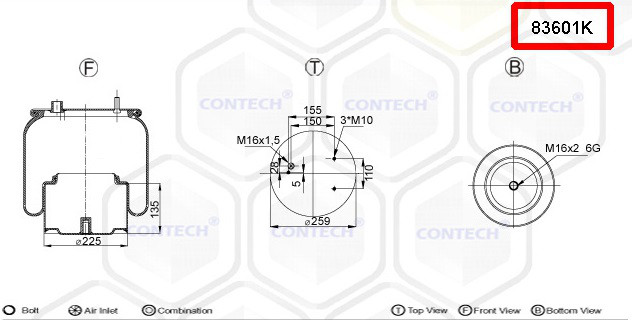 Пневмоподушка підвіски кабіни RVI G, MANAGER, MAXTER 10.82-06.97