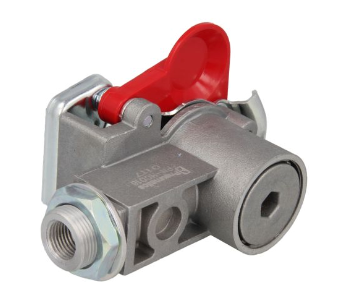 Szybkozłącze pneumatyczne (klamka, wymiar gwintu M16x1,5mm, kolor czerwony, zastosowanie przyczepa)